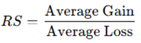 - RS (Relative Strength): Là tỷ lệ giữa giá tăng trung bình (Average Gain) và giá giảm trung bình (Average Loss) trong một khoảng thời gian nhất định (thường là 14 kỳ).