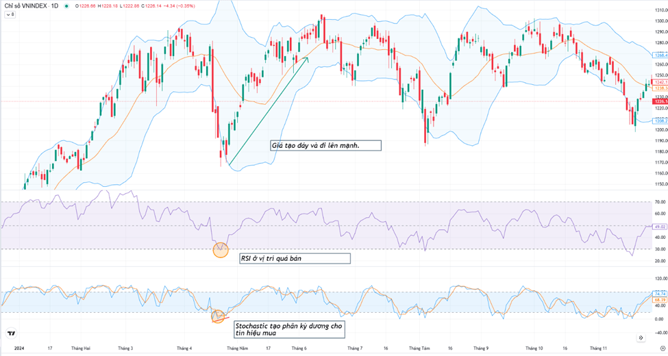 - Khi cả RSI và Stochastic đều xác nhận tín hiệu mua hoặc bán, tín hiệu đó trở nên mạnh mẽ hơn.